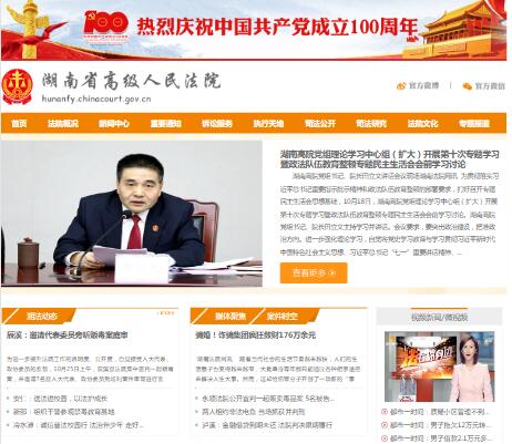 湖南省高级人民法院网站由湖南省高级人民法院主办,内容包括湖南法院、新闻中心、重要通知、审判流程公开、裁判文书公开、执行信息公开、审务信息公开、封面人物...